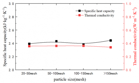 Figure 5. Effect of particle size on specific heat capacity and thermal conductivity of drilling fluid