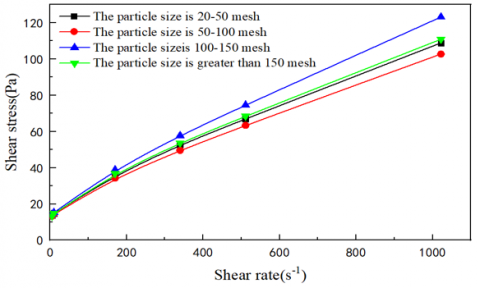 Figure 6. Rheological curves of drilling fluids with different particle sizes