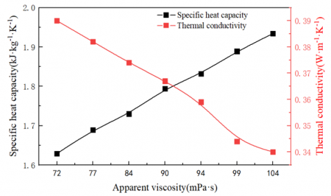 Figure 7. The effect of viscosity on the specific heat capacity and thermal conductivity of drilling fluid