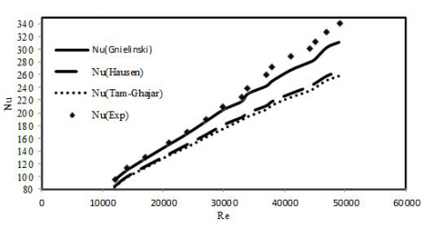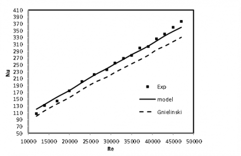 Figure 3 presents a comparison of the Nusselt numbers obtained from the models and experimental values for distilled water. Therefore, the model proposed for determining the local heat transfer coefficient of the nanofluid considering the previous studies [44-47] is presented in the following equation: