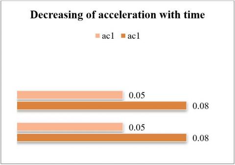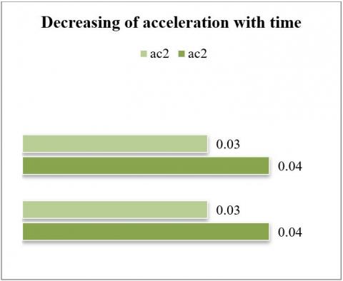 Figure 13 shows that the acceleration decreases at the end of time from 0.04g to 0.03 g.