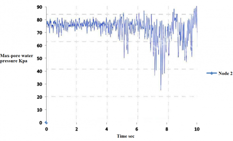 As Sultanov and Umarkhonov [9] clarified in his study The maximum pore-water pressure at the base is the larger and equal to 80 kPa and 110 kPa and Khattab and Khalil [10] observed that maximum pore-water pressure at the dam base and equal to 51 kPa for earthquake value 0.3 g.