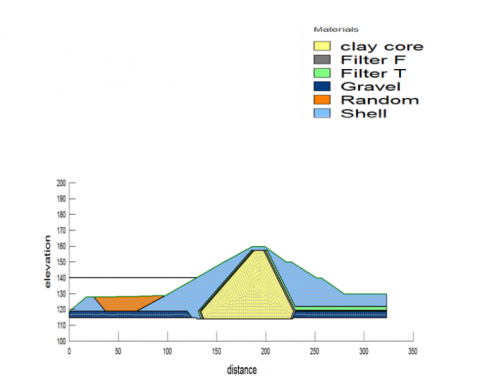 The body of the dam consisted from clay core and filter in downstream and upstream of the dam that contain from fine and coarse gravel and the dam shell.