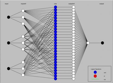 ANFIS in the modelling process to produce a model program. At this stage, a set of data is used to prevent the occurrence of a model that fits too well, where the process of building parameters and the ANFIS model is determined at a certain epoch learning stage with minimum checking, a set of test data is used to verify the effectiveness and accuracy of the model being trained. ANFIS architecture is in Figure 8.