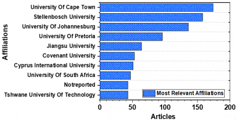 The table also includes the authors' H index, affiliations, country, and first year of publication. Furthermore, Table 2 indicates that South Africa boasts the highest number of affiliations in Africa concerning research on renewable energy, totaling six affiliations.