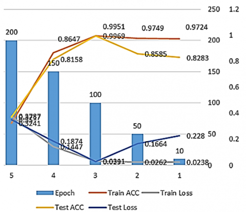 The deep learning CNN algorithm's practical training experiments will be discussed in this section, where the algorithm was tested by varying the number of training iterations as follows: