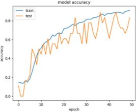 We trained this group of finger veins in the first stage with a value of (Epoch 10) and obtained a training accuracy (Train ACC) of 0.4197, where he found a loss during training with a value of 0.3442. Then we ran an accuracy test, and the results showed that (Test ACC) had a value of 0.5819, we examined the percentage of loss, and the results showed that the test loss had a value of 0.2848. We trained this group of finger veins in the second stage with a value of (Epoch 50) and obtained a training accuracy (Train ACC) of 0.9168, where he found a loss during training with a value of 0.0695. Then we ran an accuracy test, and the results showed that (Test ACC) has a value of 0.8757, we examined the percentage of loss, and the results showed that the test loss had a value of 0. 1182, which is clarified in Figure 7.