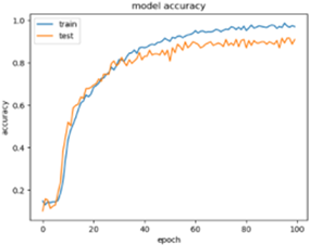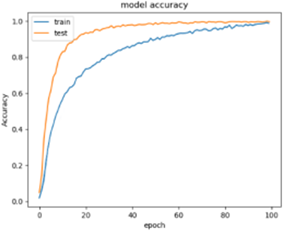We trained this group of finger veins in the first stage with a value of (Epoch 10) and obtained a training accuracy (Train ACC) of 0.3241, where he found a loss during training with a value of 0.3787. Then we ran an accuracy test, and the results showed that (Test ACC) has a value of 0.3717, we examined the percentage of loss, and the results showed that the test loss had a value of 0.35. We trained this group of finger veins in the second stage with a value of (Epoch 50) and obtained a training accuracy (Train ACC) of 0.8647, where he found a loss during training with a value of 0.1447. Then we ran an accuracy test, and the results showed that (Test ACC) has a value of 0.8158, we examined the percentage of loss, and the results showed that the test loss had a value of 0.1874. We trained this group of finger veins in the second stage with a value of (Epoch100) and obtained a training accuracy (Train ACC) of 0.9951, where he found a loss during training with a value of 0.0311, which is clarified in Figure 8.