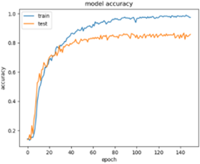 We trained this group of finger veins in the second stage with a value of (Epoch 100) and obtained a training accuracy (Train ACC) of 0.9698, where he found a loss during training with a value of 0.0305. Then we ran an accuracy test, and the results showed that (Test ACC) has a value of 0.9096, we examined the percentage of loss, and the results showed that the test loss had a value of 0.1378. We trained this group of finger veins in the second stage with a value of (Epoch 150) and obtained a training accuracy (Train ACC) of 0.9748, where he found a loss during training with a value of 0.027. Then we ran an accuracy test, and the results showed that (Test ACC) has a value of 0.9266, we examined the percentage of loss, and the results showed that the test loss had a value of 0.0712.