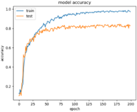 We trained this group of finger veins in the second stage with a value of (Epoch 200) and obtained a training accuracy (Train ACC) of 0.9899, where he found a loss during training with a value of 0.0121. Then we ran an accuracy test, and the results showed that (Test ACC) has a value of 0.887, we examined the percentage of loss, and the results showed that the test loss had a value of 0.1726, which is clarified in Figure 7.