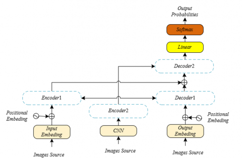 The encoder-decoder model proposed in this paper is based on the Transformer architecture, specifically designed with source visual encoders and target visual encoders to process and integrate image information related to teaching content, as shown in Figure 1. The specific structure of the encoder and decoder corresponding to Figure 1 is detailed in Figure 2. The source visual encoder is responsible for extracting features of course-related images, while the target visual encoder extracts features of visual content in the target language that learners may need to generate. These two encoders, combined with traditional text encoders, capture the intrinsic connection between text and vision through the self-attention mechanism, achieving deep integration of source language text and related visual information. This paper also introduces a visual consistency decoder, which uses the text-visual joint representation obtained in the encoding phase, along with the output of the source and target visual encoders, to generate target language sentences consistent with the semantics of the source images. This module further optimizes text-visual interaction in the decoder, adjusting the model's attention distribution to produce more accurate and natural language expressions.