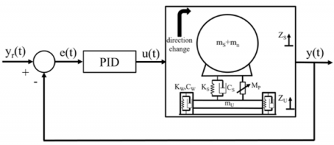 in which, yr(t) – Reference signal; y(t) – Response of the system; u(t) – Control signal; e(t) – Difference between reference signal and system response. Currently, PID controllers are widely used in the optimization of suspension systems on commercial cars [22, 23]. For specialized vehicles such as carrying liquids, it is very little. Therefore, in this study, application of PID controller for vehicle suspension system to reduce the rollover tendency of liquid tanker trucks which is presented in Figure 4.