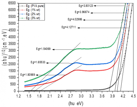 Figure 6. Variation of ($\alpha$hv)1⁄2of (PVA: Ag2O- ZnO)