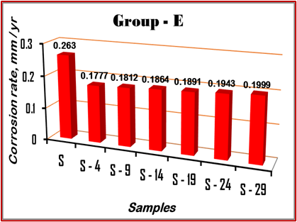 Figure 11. Comparison of the rate of corrosion between the base sample and the sample group-E
