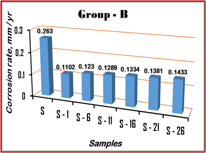 Figure 8. Comparison of the rate of corrosion between the base sample and the sample group-B