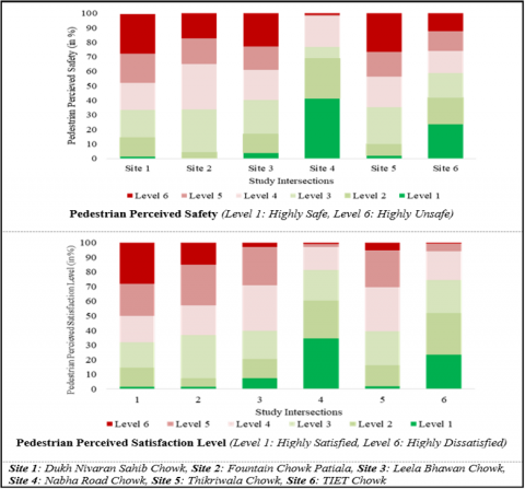 Figure 4. Responses of pedestrian perceived safety and satisfaction level