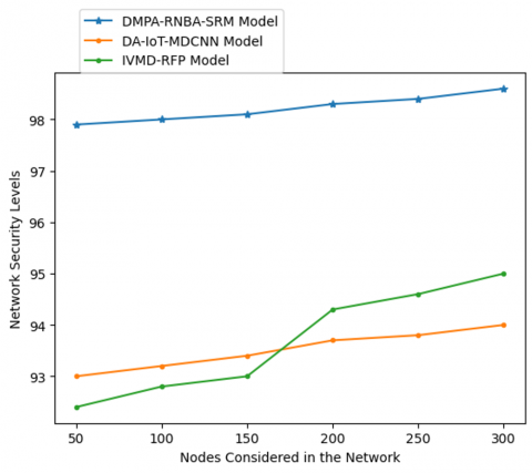 To secure the network, one must take any and all measures necessary to keep data and network operational at all times. Hardware and software are both part of this. It eliminates multiple dangers at once. It prevents them from getting into ones system or spreading throughout it. Accurate network security controls who can access the network and how. The network security levels of the existing and proposed model are shown in Table 6 and Figure 10.