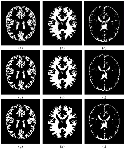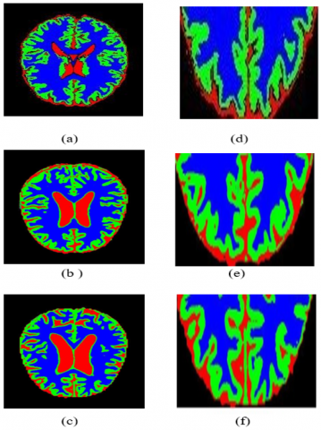 Table 3 compares the proposed PFCM approach with advanced methodologies from the literature. As shown in the table below, the suggested approach achieves slightly higher JC values compared to the most advanced techniques for brain segmentation. Values of sensitivity are also improved by the proposed method. Deep learning algorithms have demonstrated remarkable precision and accuracy in this area of research on brain tissue segmentation. However, the performance measures of the proposed method are in line with those acquired by deep learning proving the efficacy of the algorithm concerning performance and time as well.