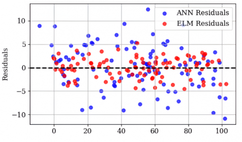 The advantages of ELM are mainly due to its simpler architecture and non-iterative training process, which help reduce overfitting risks and computational demands. On the other hand, the lower performance of the ANN model may be attributed to a bias-variance tradeoff issue: the network architecture might have been insufficiently complex to capture all data patterns, or it may have overfitted due to noise in the dataset. Improving the ANN, through techniques like hyperparameter tuning and regularization, could further enhance its predictive performance.