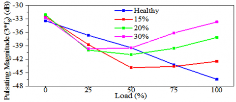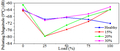 Lastly, the 9th harmonic (9fs) exhibits minimal variation and irregular behavior across different unbalance conditions and load levels, indicating limited diagnostic usefulness.