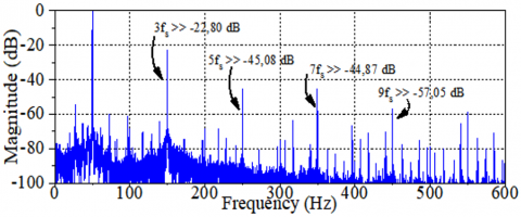 The amplitude of these characteristic frequencies escalates with the severity of the unbalance, providing critical diagnostic information. This relationship not only enhances the precision of fault detection but also supports proactive measures to mitigate potential system disruptions. Continuous spectral analysis allows operators to assess not only the existence of voltage asymmetries but also their progression over time. Understanding how these harmonic patterns behave under different neutral point configurations, such as the floating neutral in this case, enables more accurate fault classification and supports the implementation of targeted corrective actions. Consequently, the relationship between harmonic behavior, fault severity, and neutral configuration enhances diagnostic precision and contributes significantly to the maintenance and reliability of electrical systems.