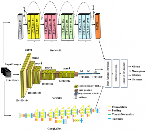 This study employs three CNN models: VGG19, ResNet50, and GoogLeNet to sequentially extract feature vectors from brain MR image.