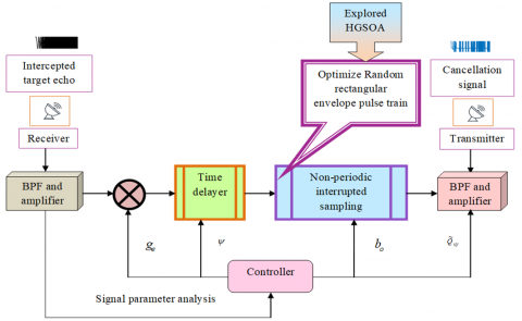 In the intercepted echo, the unavoidable time delay that occurs in the canceller is neglected, and this is considered as the initial step in the echo cancellation process. The second step here is to add the cancellation signal with the NP-ISM at the longest time field. Here, the random rectangular envelope pulse train is optimized by the explored IHGSO for the purpose of lowering the PAR. The final process in the echo cancellation is to forward the signal to the SAR and diminish the usage of energy during the transmitting process. The intercepted target echo cancellation is analyzed to get the controller. From this controller, the controlling attributes are attained to modulate the signal to be canceled on the SAR.