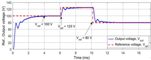 Figure 8. Step transient response of controller at R=2.4 Ω with Vref=100 V, 125 V, 80 V