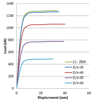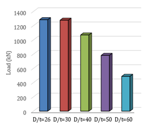 Figure 11. Effect of D/t ratio of steel tube on the ultimate load