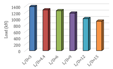 Figure 13. Effect of L/D ratio of steel tube on the ultimate load