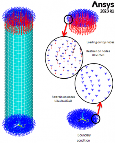 Figure 2. Boundary conditions of CFST columns by ANSYS2023R1