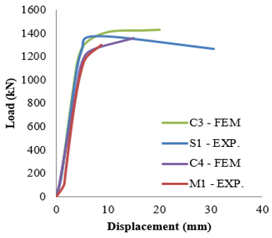A comparison was made among the investigational findings and the F.E. outcomes to validate the F.M. representation. The ultimate loads acquired from the previous experimental findings (PExp.) [27, 28] and current analysis of finite element (PFEM) with the load–axial shortening curves have undergone examination.