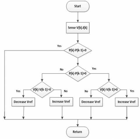The P&O algorithm is the most popular approach due to its simplicity and ease of usage. The PV array's operational voltage is perturbed in this manner. The power charging will be regarded as the product of an array terminal voltage unquiet because the P&O algorithm is unable to contrast the output voltage of array with the real highest power point voltage. By reducing the amount of the perturbation, the oscillations in the output from this approach can be minimized [22, 23].