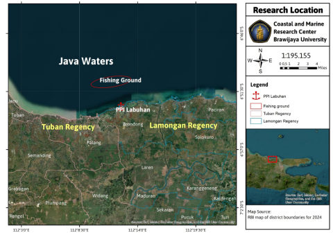 The research was conducted from March to April 2024 at the Labuhan Village Fish Auction Site, Lamongan Regency, East Java, Indonesia (6°52'57.49" S 112°12'16.83" E) (Figure 1). This location was chosen because it is one of the leading centres for fishing activities using mini trawl nets, which have high operational intensity and serve as the primary landing point for local fishermen's catches. The fishing area is located in the coastal waters of Lamongan District, with a depth of 15–20 metres.