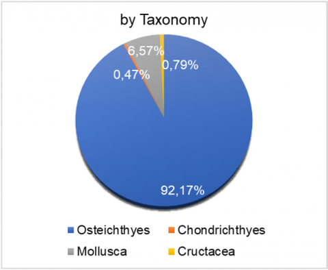 In contrast, most demersal and pelagic fish, crustaceans, and molluscs exhibited no significant biomass variation and low average weights, indicating incidental capture of non-target species. Despite their limited contribution to total biomass, these species are functionally important within benthic ecosystems. Study [8] emphasised that non-selective gears such as trawls exert uniform pressure on slow-growing invertebrates and elasmobranchs, underscoring the need for targeted conservation measures.