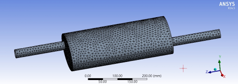 Geometric model for the 4-stroke 2-cylinder CI engine has been constructed on the basis of dimensions obtained from a MAHINDRA MAXIMO PLUS engine by manual measurement. The modeling has been carried out in CATIA V5 software and is illustrated in Figure 1. Figure 2 shows the meshed model for the elliptical chamber muffler wherein the geometric irregularity of an elliptical model is accounted for by using reduced element size or fine triangular mesh.