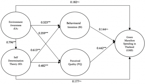 Against this backdrop, the present study investigates how EA, intrinsic motivation, perceived event quality, and spending behaviour interact in Thailand’s green marathons. By applying advanced modeling techniques, this research addresses the gap in understanding how cultural and psychological factors jointly influence sustainable participation. The findings aim to inform policymakers and organizers on designing environmentally responsible, culturally resonant sports tourism initiatives that both sustain the growth of Thailand’s marathon culture and advance the United Nations Sustainable Development Goals (SDGs).