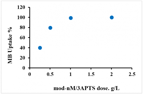 Figure 7. Effect of mod-nM/3APTS dose on MB removal