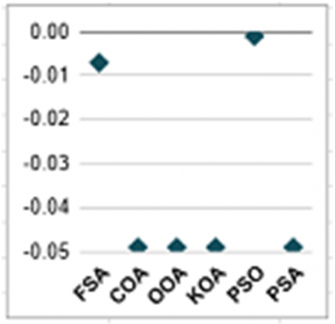 Hassan et al. [12] employ eagle-strategy supply-demand algorithm with chaotic (ESCSDO). ESCSDO is the modification of the existing supply demand optimization (SDO), which is an algorithm that was developed root in economic concept or principle. Hassan et al. [12] introduced an approach known as the eagle strategy, designed to guide the population closer to optimal candidates while steering it away from poor ones. Moreover, as the name suggests, ten chaotic maps are introduced to make the convergence process better. In their work, the suggested ESCSDO was confronted with several algorithms, such as the GA, SDO, and PSO.
