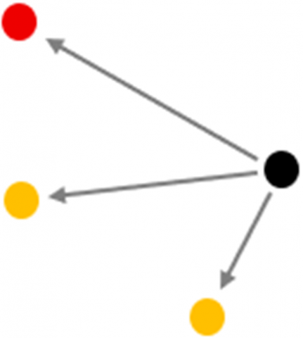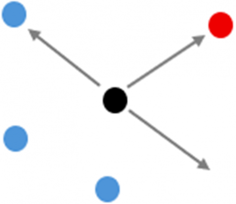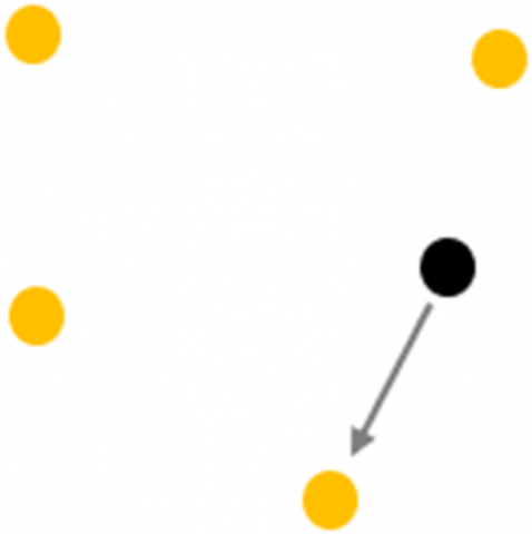 The visualization of these actions is provided in Figure 1. The black dot represents the agent. The red dot represents the biggest agent. The yellow dots represent the bigger agent. The blue dots represent the other agents. The black bars represent the boundaries.