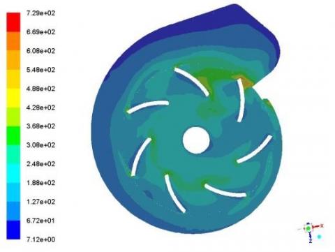 As the Reynolds stress increases in the flow field, the generation rate and level of turbulent energy will rise while the suction face will fall across the board. In terms of the impeller structure, the convex wall suppresses the curvature, the Reynolds stress and turbulent energy level; the concave wall has completely the opposite effect [6-7].