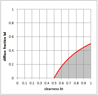 Obviously, this relation does not provide an explicit link between clearness and diffuse fraction, as ta and kt are in turn related. It still represents a relation useful to describe a specific constraint.