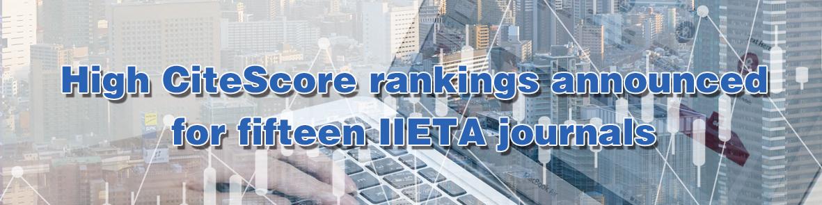 Fifteen of the journals run by the IIETA had high positions in the latest CiteScore rankings released by Scopus, a renowned abstract and citation database covering peer-reviewed journals in top-level subject fields. Below is a full list of the 2019 CiteScore rankings of these journals: