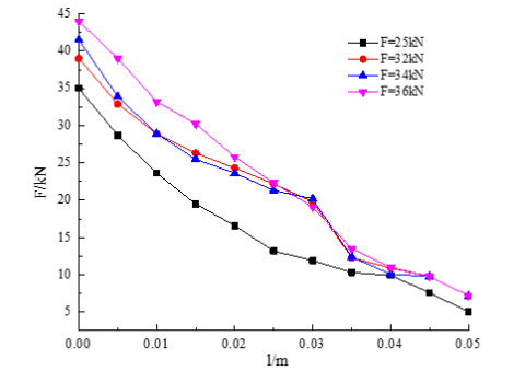 Figure 7 shows that the axial force of the bolts decreased along the axial direction, which is different from the trend of shear stress. In addition, the axial force is positively correlated with the load.