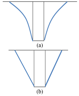 The shear cone of the failure surface of a bolt is presented in Figure 1. As shown in Figures 1(a) and 1(b), the failure surface is either made of logarithmic spirals or straight lines. Thus, the bolting system is generally considered as an inverted cone to examine the shear failure. In this way, the pulling load can be derived from the shear strength of the cone.