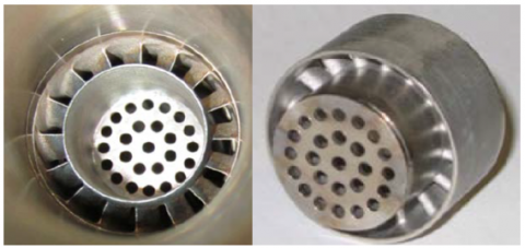 Figure 2. Low swirl injector upstream face (left) and downstream face (right) [5]