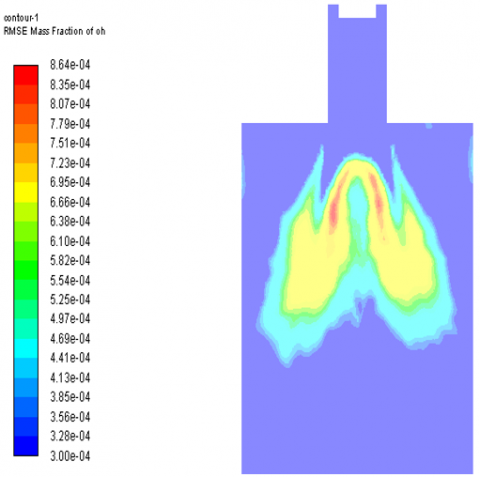 In the first simulation, premixed combustion model is used, Zimont flame speed model is adopted, in the second simulation, Species transport model is used as species model with Eddy-Dissipation Concept for Turbulence-Chemistry interaction modeling.