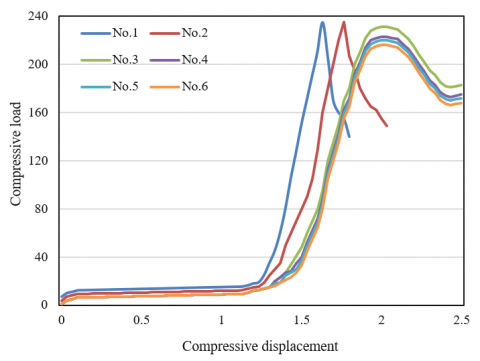 Figure 2. Compressive load-displacement curves of concrete test pieces
