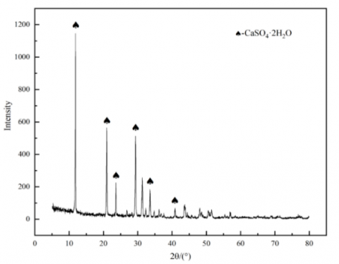 The FGDG was provided by a thermal power plant in Hebei Province, China, and dried at 40°C. CaO and SO3 are the top two components in the FGDG, followed in descending order by SiO2, MgO and Al2O3. The main chemical components and XRD pattern of the FGDG are displayed in Table 2 and Figure 2, respectively. It can be seen that the FGDG mainly consists of CaSO4·2H2O. After 5min grinding, the SSA of the FGDG reached 480m2/kg.