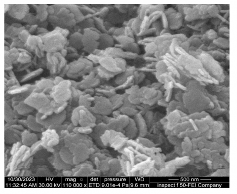 A number of factors contribute to the formation of nanoflakes, nanoflowers, and nanoparticles, including the employment of controlled synthesis processes, response parameter adjustment, post-synthesis treatments, and the careful selection of precursors [23]. With these characteristics, researchers may create unique nanoflakes, nanoflowers, and nanoparticles that can be used in a variety of fields, including electronics, catalysis, sensing, and medical nanostructures. Response factors that affect the reaction rate throughout the nanostructure-making process greatly influence their size and form [24]. Precursor concentrations, temperature, pressure, pH, and reaction time are all included. One strategy to raise the possibility of attaining superior nanostructure development is to improve the reaction time [25]. Scanning electron microscopy (SEM) images of commercial and synthetic magnesium oxide (MgO) nanoparticles show how these parameters directly affect the pace at which nanostructures develop, which in turn affects the size and shape of the structures. According to the data, the particles seemed to have smooth surfaces and a nanoflakes shape. While the majority of the particles were grouped together, others were widely scattered. The average size of the artificial MgO nanoflakes was 22.63 [26]. Figure 4 the size ranges from 18.73 to 29.97 nm, and the shape and dimensions of nm. The commercial MgO nanoflakes, on the other hand, ranged in size from 26.23 to 52.05 nm, with an average of 44.3 nm. Rapid reduction, assembly, and sintering of room-temperature nanoflakes produces the observed nanostructures [27].